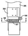 또한 각각의 가로빔에는 도 9에 도시된 바와 같이 컨베이어 벨트 바로 옆에 돌출되는 소형 플랜지(316)가 한쪽 면에 마련된다.  플랜지(316)는 벨트(313)가 가로빔에서 이탈되는 것을 방지하는 데 도움을 주는 역할을 한다.Also, in each of the transverse beams, a