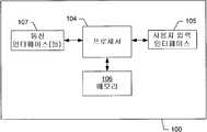 프로세서(107)는 또한 적어도 하나의 통신 인터페이스, 또는 데이터, 콘텐츠 등을 디스플레이, 송신 및/또는 수신하기 위한 다른 수단에 접속될 수 있다.  사용자 입력 인터페이스(105)는, 네트워크 엔티티(100)가 사용자로부터 데이터를 수신할 수 있게 하는, 키 패드, 터치 디스플레이, 조이스틱 또는 다른 입력 디바이스 같은 임의의 다수의 디바이스를 포함할 수 있다.  이와 관련하여, 프로세서(104)는 사용자 입력 인터페이스의 하나 이상의 구성요소의 적어도 몇몇의 기능을 제어하도록 구성된 사용자 인터페이스 회로를 포함할 수 있다.  프로세서(104) 및/또는 프로세서의 사용자 인터페이스 회로는 사용자 인터페이스의 하나 이상의 구성요소의 하나 이상의 기능을, 프로세서에 액세스 가능한 메모리(예를 들면, 휘발성 메모리, 비휘발성 메모리 등)에 저장된 컴퓨터 프로그램 명령어(예를 들면, 소프트웨어 및/또는 펌웨어)를 통해 제어하도록 구성될 수 있다.The