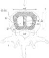다시 말해, 전술한 제1, 2 나사부(21, 22)의 제1, 2 방향은 본체(10) 자체가 추체(50)와 이웃한 추체(50') 사이에서 자체적인 고정 기능을 수행하면서 추체(50)와 이웃한 추체(50') 상호간의 골유합(bone graft)을 촉진시키며, 추가적인 척추 고정기기 등의 사용을 저감시키기 위한 기술적인 수단이라 할 수 있다.In other words, the first and second directions of the first and second threaded