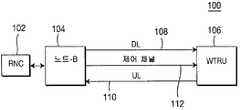 노드 B (104) 는 HSDPA 및 EU 동작을 지원하도록 구성된다.  따라서, 각 노드 B 는 각각 HS-DSCH 및 EU 채널을 통하여 WTRU (106) 로/로부터의 DL 및 UL 송신을 위한 무선 자원을 동적으로 할당한다.  HS-DSCH 및 EU 모두에 대한 무선 자원 할당 정보는 공통 제어 채널 (112) 을 통하여 송신된다.Node