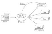 네트워크 시스템은 인터넷 기반 망과 게이트웨이(Gateway)들로 이루어진다. 상기 인터넷 기반 망은 IP를 기반으로 광케이블 망, 동축 케이블 망, FTTH(Fiber To The Home), 전화망, 무선망 등 여러 종류의 망 등이 사용될 수 있다. 게이트웨이에서는 일반적인 데이터 전달뿐만 아니라, IGMP(Internet Group Management Protocol) 등의 프로토콜을 이용한 멀티캐스트(Multicast) 그룹 관리, QoS(Quality of Service) 관리 등을 수행할 수 있다.The network system consists of internet based network and gateways. The Internet-based network may be based on IP, such as an optical fiber network, a coaxial cable network, a fiber to the home (FTTH) network, a telephone network, and a wireless network. The gateway can perform not only general data transmission but also multicast group management and quality of service (QoS) management using protocols such as Internet Group Management Protocol (IGMP).