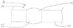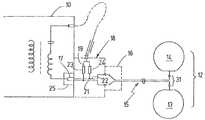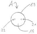 중성 도체(21)는 제 1 전극 패치(13)에 접속되며, 중성 도체((22)는 제 2 전극 패치(14)에 접속된다.  분할 회로(25)는 도 2에서는 개략적으로만 제안되어 있고, 두 개의 전극 패치(13, 14) 사이에 옴 저항 또는 임피던스를 측정하려는 목적에 적합하다.  이러한 방법에서, 양 전극 패치(13, 14) 및 그에 따른 전체 중성 전극 장치(12)가 환자에 대한 충분한 전기 접점을 포함하는지의 여부가 검출된다.The