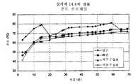 한편, 쉴로이니게르(Schleuniger) 장치를 사용하여, 본원에 참고로 도입된 문헌 [Remington's Pharmaceutical Sciences, 18th edition, 1990, Chapter 89 "Oral Solid Dosage Forms", pages 1633-1665]에 기재된 바와 같이 파쇄 강도 또는 정제 경도 테스트를 수행하는 경우에는, 정제/제형을 평행으로 배열된 한 쌍의 평판 사이에 배치하고, 정제의 두께에 대해 실질적으로 수직으로, 또한 정제의 직경과 실질적으로 일렬로 힘이 적용되어 이 방향으로 직경이 감소되도록 평판에 의해 압착시킨다. 이와 같이 감소된 직경은, 파쇄 강도 테스트 수행 전 정제의 직경을 기준으로 하여, % 직경으로 나타내어진다. 파쇄 강도 또는 정제 경도는, 테스트된 정제/제형이 파쇄될 때의 힘으로서 정의된다. 적용된 힘으로 인해 변형되어도 파쇄되지 않는 정제/제형은 이러한 특정 힘에서 파쇄-내성을 갖는 것으로 간주된다.On the other hand, using a Schleuniger apparatus, as described in Remington's Pharmaceutical Sciences, 18th edition, 1990, Chapter 89 "Oral Solid Dosage Forms ", pages 1633-1665, incorporated herein by reference, In the case of performing a strength or refinement hardness test, the tablet / formulation is placed between a pair of flat plates arranged in parallel, and a force is applied substantially perpendicular to the thickness of the tablet and substantially in line with the diameter of the tablet And pressed by a flat plate so that the diameter decreases in this direction. This reduced diameter is expressed as a% diameter, based on the diameter of the tablet before the fracture strength test. The crush strength or refinement hardness is defined as the force at which the tested tablet / formulation is crushed. Tablets / formulations that are not fractured when they are deformed due to applied forces are considered to have fracture-resistance at this particular force.