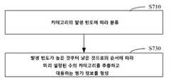 블록 S710에서, 카테고리의 발생 빈도에 따라 분류한다.In block S710, classification is made according to the occurrence frequency of the category.