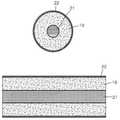본 발명의 도 2의 실시예는 도 1의 실시예와 달리, 제1 섬유층(10) 및 제2 섬유층(21, 22)이 하나의 섬유체에 포함되어 있는 것을 특징으로 한다,2 of the present invention is different from the embodiment of Fig. 1 in that the