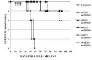 도 18은 ALL의 전이된 모델에서 hBU12의 활성이다.  상기 마우스에게 종양 이식 후 1일째에 단일 용량의 10 ㎎/㎏ hBU12, hBU12-vcE(4) 또는 hBU12-mcF(4), IP를 제공하였다.  그룹당 10마리의 마우스가 존재하였다.