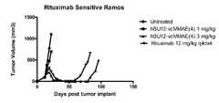 Figure 3 is the antitumor activity of the naked mBU12 antibody and mBU12-mcMMAF against the Ramos xenograft SCID model. (1 mg / kg), the mBU12 naked antibody (5 mg / kg), or the mBU12 naked antibody (5 mg / kg) ), mBU12-mcMMAF4 (1 mg / kg) and mBU12-mcMMAF4 (5 mg / kg). The dose schedule was q4dx3.
