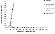 도 3은 라모스(Ramos) 이종이식 SCID 모델에 대한 네이키드 mBU12 항체 및 mBU12-mcMMAF의 항종양 활성이다.  마우스의 그룹들(5/그룹)을 처리하지 않거나, 또는 종양 크기가 대략적으로 평균 100 ㎣인 경우, 상기 그룹들에게 mBU12 네이키드 항체(1 ㎎/㎏), mBU12 네이키드 항체(5 ㎎/㎏), mBU12-mcMMAF4(1 ㎎/㎏) 및 mBU12-mcMMAF4(5 ㎎/㎏)를 제공하였다.  용량 스케줄은 q4dx3이었다.