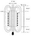도 4는 본 발명의 배기 가스 처리 장치에 있어서의 자장에 의한 플라즈마의 제어 방법의 원리도이며, 반응관(및/또는 수냉 재킷)의 외주부에 배치된 코일에 전원 장치로부터 전류를 흘려보내는 방식을 나타내는 도면이다.