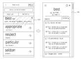 본 발명의 실시예에 따르면, 단어 목록에서 연속적인 단어 선택 시 자동으로 이전 선택 단어의 뜻을 닫고 새로 선택된 단어의 뜻을 표시함으로써 단어장의 이용 편의를 향상시킬 수 있다.According to the embodiment of the present invention, when the consecutive words are selected in the word list, the meaning of the previously selected word is automatically closed and the meaning of the newly selected word is displayed, thereby improving the usability of the wordbook.