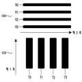 도4에서 제3전극(C)은 제1전극(T)과 마찬가지로 제1축으로 연장된 복수의 제3전극(C0, C1, C2, C3)을 포함할 수 있다. 이는 단지 예시일 뿐이며 제3전극(C)은 실시예에 따라 다른 형상 및/또는 연장 방향을 가질 수 있다.In FIG. 4, the third electrode C may include a plurality of third electrodes C0, C1, C2, and C3 extended in a first axis, like the first electrode T. This is merely an example, and the third electrode C may have different shapes and / or extension directions depending on the embodiment.