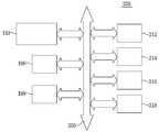 상기 제 1 모듈 장치는 중앙 처리 장치(Central Processing Unit; CPU, 193), 플로피 디스크 드라이브(Floppy Disk Drive, 196) 및 콤팩 디스크 롬 드라이브(Compack Disk ROM Drive, 199)로 구성될 수 있다. 더불어서, 상기 적어도 하나의 버스 라인(205) 상에 제 2 모듈 장치가 배치될 수 있다. 상기 제 2 모듈 장치는 적어도 하나의 버스 라인(205)과 전기적으로 접속할 수 있다.The first module device may include a central processing unit (CPU) 193, a