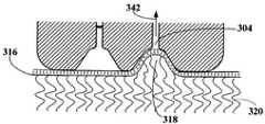 도 3b에서, 돌출부(318)는 진공챔버(304)를 채우고, 흡입은 화살표(342)에 의해 표시된 것과 같이 챔버(304)에서 대기압 미만의 압력에 의해 유지되어, 돌출부(318)를 유지한다.3B, the