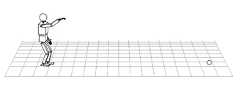 로봇(100)의 공 던지기 모션의 경우, 로봇(100)의 오른쪽 어깨 관절의 롤축(8R)과, 어깨 관절 피치축(9R)과, 어깨 관절 요우축(10R)을 사용하고, 로봇의 팔꿈치 관절 요우축(12R)과, 팔꿈치 관절 피치축(11R)을 사용하며, 손목 관절 롤축(13R)과, 손목 관절 피치축(14R)과, 손목 관절 요우축(15R)을 사용하여 공을 원하는 방향으로 던지게 된다.A shoulder