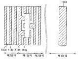 본 실시예에서, 상기 제1 영역에는 끊어진 부위를 포함하는 라인 형상을 갖는 2개의 제1 라인 패턴(114a)이 구비된다. 이하에서, 제1 방향으로 나란하게 연장되는 끊어진 부분을 포함하는 라인은 1개의 제1 라인 패턴(114a)이라 하면서 설명한다. 상기 제1 라인 패턴(114a)이 끊어지는 부위와 인접해서는 상기 제1 라인 패턴(114a)의 선폭이 다소 감소될 수 있다.In the present embodiment, the first region is provided with two