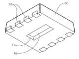 본 발명의 반도체 칩(10)은 상부에 복수의 단자(11)가 돌출 형성되어 있으며 단자(11)에는 리드프레임(20)을 통해 열전달이 이루어질 수 있도록 직접 또는 간접적으로 연결되어 하부뿐만 아니라 상부로도 열방출이 이루어질 수 있도록 한다.A