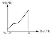 영상 내에는 다양한 피사체들이 존재하므로, 영상 내에서 촬영 거리는 불규칙하게 변화된다. 촬영 거리는 영상을 y축에 대하여 복수 개로 분할하여 선형으로 근사될 수 있다. 예를 들어, 도 4a는 거리 정보가 하나의 선형 함수로 나타내어지는 실시예이다. 도 4b는 촬영 거리가 증가되다 일정해지는 2개의 선형 함수로 나타내어지는 실시예이다.Since there are various subjects in the image, the shooting distance varies irregularly in the image. The shooting distance can be linearly approximated by dividing the image into a plurality of images with respect to the y-axis. For example, FIG. 4A is an embodiment in which the distance information is represented by one linear function. FIG. 4B shows an embodiment in which the photographing distance is increased and becomes constant by two linear functions.