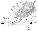 한편, 탄성체인 스프링(224)의 힘에 의해서 항상 상기 자동산개기(220)의 립코드체결부에 맞닿아 있는 립코드 고정핀(223)을 외부에서 화살표 방향으로 밀어 넣고 상기 립코드(216)를 상기 립코드 고정핀(223) 사이에 끼워 넣으면 자동으로 상기 스프링(224)의 힘에 의해서 상기 립코드(216)는 확실하게 상기 자동산개기(220)에 결속된다.The lip
