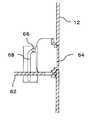 본체 케이싱(12)에 내측에 스테이(52)가 부착되고, 이 스테이(52)의 중앙 부분에는, 모터(54)가 부착되고, 이 모터(54)에 의해 피니언 기어(56)가 회전된다. 피니언 기어(56)에는 락(58)이 맞물려져 있고, 피니언 기어(56)가 정역 방향으로 회전함으로써 락(58)이 상하 방향으로 이동한다.A