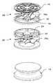 그리고, 스테이(22)는, 필터용 팬(20)의 상방에 있고, 이 스테이(22)의 중심부의 하측에 모터(24)가 부착되어 있다. 필터용 팬(20)의 상부 원판(42)은 중앙 부분이 하부를 향해 패여있고, 여기에 모터(24)의 일부가 수용된다. 또한, 모터(24)의 출력축이 상부 원판(42)의 중심에 고정되어 있다.The