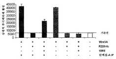 도 3.  루시페라제에 연결된 8xTCF 프로모터 성분을 안정하게 발현하는 STF293 세포에서 루시페라제 리포터 검정을 수행하였다.  세포를 Wnt3A 뿐만 아니라 다양한 농도의 18R8 및 18R5를 함유하는 조건화 배지로 처리한 다음, 18 시간 후에 이중 글로(Dual-Glo) 루시페라제 검정 리포터 시스템 (프로메가(Promega))을 이용하여 검정하였다.  그 결과 18R8 및 18R5이 둘 모두 Wnt 신호전달을 억제하고, 18R5가 18R8 보다 더 큰 친화도로 결합하는 것이 밝혀졌다.