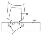 도 8은 웨브 하류 방향으로 연성 웨브 재료 상에 인쇄된 평행한 미세도체들을 도시하는 도면.