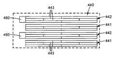 영역 내의 비등방성 면저항은 한 방향에서의 면저항이 직교 방향에서의 면저항보다 적어도 10% 더 큰 것, 또는 적어도 25% 더 큰 것, 적어도 50% 더 큰 것, 적어도 100% 더 큰 것, 적어도 200% 더 큰 것, 적어도 500% 더 큰 것, 또는 심지어 적어도 10배 더 큰 것을 포함할 수 있다. 몇몇 실시 형태에서, 영역 내의 비등방성 면저항은 한 방향에서의 면저항이 직교 방향에서의 면저항보다 적어도 1.5배 더 큰 것을 포함한다. 몇몇 실시 형태에서, 영역 내의 비등방성 면저항은 한 방향에서의 면저항이 직교 방향에서의 면저항보다 1.1 내지 10배, 다른 실시 형태에서, 1.25 내지 5배, 또 다른 실시 형태에서 1.5 내지 2배 더 큰 것을 포함한다.Anisotropic sheet resistance in the region is such that the sheet resistance in one direction is at least 10% greater, or at least 25% greater, at least 50% greater, at least 100% greater, at least 200% A larger one, at least 500% larger, or even at least 10 times larger. In some embodiments, the anisotropic sheet resistance in the region includes that the sheet resistance in one direction is at least 1.5 times greater than the sheet resistance in the orthogonal direction. In some embodiments, the anisotropic sheet resistance in the region is such that the sheet resistance in one direction is 1.1 to 10 times greater than the sheet resistance in the orthogonal direction, in another embodiment is 1.25 to 5 times, and in another embodiment is 1.5 to 2 times greater .