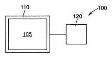 도 1은 터치 스크린 센서(100)의 개략도를 도시한다.  터치 스크린 센서(100)는 터치 감지 구역(105)을 갖는 터치 스크린 패널(110)을 포함한다.  터치 감지 구역(105)은 터치 센서 구동 장치(120)에 전기적으로 결합된다.  터치 스크린 패널(110)은 디스플레이 장치 내에 통합된다.FIG. 1 shows a schematic diagram of a