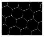 25 and 26 are SEM micrographs of geometric shapes for a hexagonal mesh (sometimes referred to as a "hexagonal" mesh) and a square mesh, which are the properties of Examples 6 to 40; The bright shaded lines in each image represent the pattern of metal conductors, and the dark areas represent the substrate used in the examples.