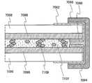 위의 구조에서, 제 1 전지와 제 2 전지가 구조체를 개재하여 서로 대향할 때, 제 1 기판과 제 2 기판은 구조체가 제공되지 않은 측면들 상에 각각 배열되는 것이 바람직하다.In the above structure, when the first cell and the second cell are opposed to each other with the structure interposed therebetween, it is preferable that the first substrate and the second substrate are respectively arranged on the side where the structure is not provided.
