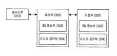 The storage unit 320 stores various programs and data necessary for the operation of the server. In particular, the SN storage unit 322 included in the storage unit 320 stores the social network information for each terminal under the control of the controller 300, that is, the telephone numbers of the persons who are related to each terminal, / RTI > Also, the media storage unit 324 included in the storage unit 320 maps the media received from each terminal according to the control of the controller 300, and stores the media by mapping the identification information (e.g., telephone number) of each terminal .