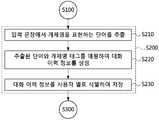 여기에서, 입력 문장은 사용자가 발화한 음성을 인식하여 문자로 변환한 문장 또는 사용자가 사용자 단말에 설치된 적어도 하나의 어플리케이션 또는 온라인 서비스의 사용을 위해 입력하는 문장을 의미할 수 있으나 이에 한정되는 것은 아니다.Herein, the input sentence may mean a sentence which recognizes a speech uttered by the user and converts the sentence into a character, or a sentence that a user inputs for use of at least one application or online service installed in the user terminal .