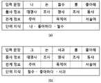 보다 구체적으로 예를 들어, 도 3 (a)에 도시된 바와 같이 사용자로부터 “나는 철수를 좋아해”라는 입력 문장이 수신되면, 화행 분석기와 같은 문장 구조 분석기를 기반으로 입력 문장을 분석하여 입력 문장을 구성하는 단어 각각에 대한 품사 정보인 대명사/ 조사/ 명사/ 조사/ 동사를 추출할 수 있다.More specifically, for example, as shown in FIG. 3 (a), when an input sentence of " I like withdrawal " is received from a user, the input sentence is analyzed based on a sentence structure analyzer, Pronoun / survey / noun / survey / verb, which is part of speech information for each of the constituent words.