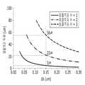 도 14에는 150 nm 수준의 파장 선택성과 이에 대응하는 각도 선택성을 충족하는 회절 격자의 두께가 나타나 있다. 회절 격자의 수가 늘어남에 따라 브래그 각도가 작아지면서 회절 격자의 두께가 증가한다. 회절 격자의 두께 증가는 회절 효율이 증가하는 긍정적인 효과도 기대할 수 있다.FIG. 14 shows the thickness of the diffraction grating satisfying the wavelength selectivity of 150 nm and corresponding angular selectivity. As the number of diffraction gratings increases, the Bragg angle decreases and the thickness of the diffraction grating increases. The increase in the thickness of the diffraction grating can be expected to have a positive effect of increasing the diffraction efficiency.
