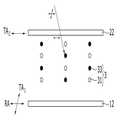 도 4를 참조하면, 투과 모드에서 백라이트 유닛(50)으로부터 제1 방향 및 제2 방향으로 진동하는 광이 입사되면, 반사 편광판(12)의 투과축(TA1)과 나란한 제2 방향으로 진동하는 광만 반사 편광판(12)을 통과하고, 제1 방향으로 진동하는 광은 반사 편광판(12)에 반사된다.  전계가 형성되어 있지 않은 상태에서 반사 편광판(12)을 통과한 광은 이색성 염료(33)에 의해 흡수되지 아니하고 흡수 편광판(22)에 이를 수 있다.  흡수 편광판(22)에 이르는 광은 흡수 편광판(22)의 투과축(TA2)과 수직한 제2 방향으로 진동하므로 흡수 편광판(22)에 흡수된다.  따라서, 투과 모드에서 전계가 형성되지 않으면 블랙 계조를 표시할 수 있다.Referring to FIG. 4, when light is incident from the