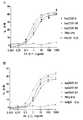 Figure 10 shows the binding of anti-CD37 antibodies to 300-19 cells expressing the macaque monkey CD37 antigen analyzed by flow cytometry: (A) muCD37-3, muCD37-12, muCD37-38, muCD37-50 , binding of muCD37-51, muCD37-56, muCD37-57, WR17 and TRU-016 and (B) binding of huCD37-3, huCD37-38, huCD37-50, huCD37-51, huCD37-56 and huCD37-57. Binding curves were used to determine the EC50 of antibody binding corresponding to the apparent Kd of each antibody.