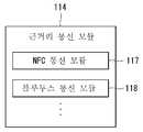 근거리 통신 모듈(114)은 근거리 통신을 위한 모듈을 말한다. 근거리 통신 기술로 블루투스(Bluetooth), RFID(Radio Frequency Identification), 적외선 통신(IrDA, infrared Data Association), UWB(Ultra Wideband), ZigBee 등이 이용될 수 있다.The short-