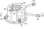 도 3a-3c를 참조하면, 삽입체(300)는 내측 구역(290) 내에 배치되고 그리고 채널(134)의 상부 부분(350)을 형성한다. 삽입체는 하우징(200)의 상단 부분에 커플링되도록 구성된 절두형(truncated) 부분(320)을 가지는 커플링 리드(310), 및 환형 매니폴드(205)의 내에 배치되도록 그리고 그 내부에 대해 플러싱되도록(flushed) 구성된 수직 바디(330)를 포함한다. 바디(330)는 상부 부분(350)을 형성한다. 상부 부분은 원통형 형상 또는 실질적으로 원통형인 형상을 포함할 수 있다. 일 예에서, 도 3b에 도시된 바와 같이, 상부 부분(350)은 원통형 상부 부분(351) 및 확장하는 하단 부분(352)을 포함하고, 상기 확장하는 하단 부분(352)은 복수의 개구들(346)의 하단부 세트 아래에 배치된다.3A-3C, the