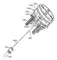 Figure 22 illustrates a cross-sectional view of the cannula of Figure 21 and the mounted entry guide of Figures 23a and 23b in combination with a mechanism mounted on the instrument actuator on an actuator platform according to one embodiment of the present disclosure.