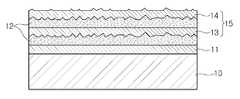 상기 전극층 형성 공정 완료 후 상기 전극층의 평균 표면 거칠기가 1.5nm를 초과하는 경우, 도 3d 및 도 3g와 같이 상기 전극층의 표면에 표면처리를 하여 평탄한 표면을 갖는 전극층(15)을 형성할 수 있다.When the average surface roughness of the electrode layer after the electrode layer forming process is more than 1.5 nm, the surface of the electrode layer may be surface-treated as shown in FIGS. 3D and 3G to form the