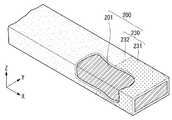 여기서, 도전성 코팅층(230)은 코어(201)와 다른 금속 재질을 포함하여 형성될 수 있으며, 코어(201)의 길이 방향인 제1 방향(x)을 따라 용융점이 서로 다른 제1 코팅층(231)과 제2 코팅층(232)을 포함할 수 있다.The