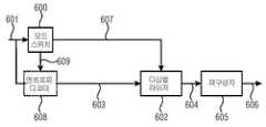 도 8은 일 실시 예에 따른, 도 8의 인코더에 의해 발생되는 디코딩 비트스트림에 적합한 디코더의 블록 다이어그램을 도시한다.