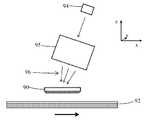 제8 실시예에서, 도 7을 참조하면, 마스크(90)는 xz 및 yz 평면 양자에서 포토레지스트 코팅된 기판(92)과 대략 평행하게 마련되고 요구되는 분리를 갖는다.  레이저원(94) 및 광학 시스템(95)은 yz 평면에서 조준된 노광 빔(96)을 형성하고, 그 평면에서 이의 강도 프로파일 및 폭은 그 방향으로 마스크 패턴의 정도로 균일한 조사를 제공한다.  xz 평면에서, 상기 광학 시스템(95)은 국제 특허 출원 제PCT/IB2011/052977호의 제시에 따라 선택된 마스크(90)에서 빔의 입사 각도 범위를 발생시켜서 상기 조사 빔의 상이한 각도 성분은 ATL 또는 DTL 기술에 의해 형성된 것과 대략 동등한 적분 강도 분포로 기판을 노광시킨다.  상기 포토레지스트 코팅된 기판(92)은 마스크(90)에서의 패턴을 빔(96)으로 조사하면서 x방향으로 대략 정속도로 변위됨으로써 노광되고, 이에 따라 상기 마스크 패턴 주기의 절반인 주기를 갖는 고해상도 격자 패턴이 기판(92)에 균일하게 인쇄된다.  본 실시예에서, 상기 조사는 적절한 레이저로부터 연속해서 또는 펄스될 수도 있는데, 이는 후자의 경우에 연속적인 펄스 사이에서 기판의 변위가 상기 기판을 노광시키는 적분된 횡방향 강도 분포가 DTL 또는 ATL 기술에 의해 생성된 것과 대응하도록 T/φ보다 더 작아져야 되는 경우에도 가능하다.  상기 기판 변위와 펄스의 동기화는 전술한 기구를 이용하여 얻어질 수 있다.  또한, 상기 병진 스테이지의 요잉 운동이 전술한 바와 같은 수단에 의해 충분히 작아지거나 충분히 보상되는 것을 중요하다.In an eighth embodiment, referring to Fig. 7, the
