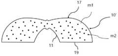 상기 렌즈 본체(10')는 굴절률이 1.4 이상인 제1투명재질(m1)과, 굴절률(n2)이 1.4 이상이며 상기 제1재질과 다른 굴절률을 가지는 제2투명재질(m2)로 구성될 수 있다. 상기 제2투명재질은 10% 이하의 부피비로 혼합되어, 상기 렌즈 본체를 통과하는 광이 상기 렌즈 본체 내부에서 진행할 때 산란될 수 있도록 한다. 이와 같이 확산렌즈를 구성함으로써, 입사부(11)를 통하여 입사된 광이 렌즈 본체(10') 내부에서 진행할 때 산란효과를 가지게 되어, 도 5b와 같이 환형 형태가 없는 휘도 분포를 얻을 수 있다.The lens body 10 'may include a first transparent material m1 having a refractive index of 1.4 or more and a second transparent material m2 having a refractive index n2 of 1.4 or more and having a different refractive index from the first material . The second transparent material is mixed at a volume ratio of 10% or less so that light passing through the lens body can be scattered when traveling inside the lens body. By constituting the diffusing lens in this way, scattering effect is obtained when the light incident through the