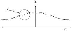 도 5a 및 도 6a를 참조하면, 비교예에 따른 확산렌즈는 광축(Z)에서 일부 이격된 위치에서 환 형태의 무늬(P)가 발생되면서, 광 균일도가 떨어지는 것을 알 수 있다. 여기서 r은 렌즈 중심부로부터의 거리를 나타낸 것이다.Referring to FIGS. 5A and 6A, it can be seen that the diffuse lens according to the comparative example generates a ring-shaped pattern P at a position spaced apart from the optical axis Z, and the light uniformity is lowered. Where r is the distance from the lens center.