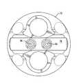 도 19d는 많은 구체예에 따른, 구동 샤프트와 피구동 샤프트에서 핀 수용 횡단 슬롯의 구성형태를 예시하는, 도 18, 19a 및 19b의 메커니즘의 단면도이다.