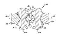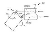 각도를 통해 토크를 전달하기 위한 메커니즘은 하나 이상의 추가 특징부를 포함할 수 있고, 및/또는 하나 이상의 추가 특징을 가질 수 있다. 예를 들어, 메커니즘은 구동 샤프트와 연결 핀을 연결할 수 있는 십자형 핀을 더 포함할 수 있다. 십자형 핀은 연결 핀을 횡단해서 배향될 수 있고, 구동 샤프트에 대해 회전할 수 있게 장착된다. 구동 샤프트 원단부의 외부 표면은 구면을 포함할 수 있다. 구동 샤프트의 외부 표면은 연결 부재의 수용부와 연접할 수 있으며, 이로써 구동 샤프트와 수용부는 이들 사이에서 구형 선회하는 동안 서로에 대해 축 상에서 구속될 수 있다. 수용부는 구동 샤프트 구면과 연접하는 구면을 포함할 수 있다. 구동 샤프트 원단부는 일군의 구형 기어 톱니를 포함할 수 있고, 피구동 샤프트 근단부는 구동 샤프트 기어 톱니와 연접하는 일군의 구형 기어 톱니를 포함할 수 있으며, 이로써 구동 축과 연결 축 사이의 각도와 피구동 축과 연결 축 사이의 각도가 실질적으로 동일하게 유지된다. 많은 구체예에서, 구동 샤프트와 구동 샤프트 기어 톱니 또는 피구동 샤프트와 피구동 샤프트 기어 톱니 중 적어도 하나는 일체 형성된다. 많은 구체예에서, 메커니즘은 60도를 초과하는 각도를 통해 토크를 전달할 수 있도록 작동될 수 있다.The mechanism for transmitting torque through an angle may include one or more additional features, and / or may have one or more additional features. For example, the mechanism may further include a cross pin for connecting the drive shaft and the connection pin. The cross pin can be oriented across the connecting pin and mounted rotatably relative to the driving shaft. The outer surface of the drive shaft distal portion may include a spherical surface. The outer surface of the drive shaft can be in engagement with the receiving portion of the connecting member such that the drive shaft and receiving portion can be axially constrained relative to each other while spherically pivoting therebetween. The receiving portion may include a spherical surface that is connected to the driving shaft spherical surface. The distal end of the drive shaft may include a set of spherical gear teeth and the proximal end of the driven shaft may include a set of spherical gear teeth in engagement with the drive shaft gear teeth so that the angle between the drive shaft and the connecting shaft, The angle between the axis and the connecting axis is kept substantially equal. In many embodiments, at least one of the drive shaft, the drive shaft gear tooth, or the driven shaft and the driven shaft gear tooth is integrally formed. In many embodiments, the mechanism can be operated to deliver torque through angles in excess of 60 degrees.