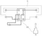 도 3은 도 2에 따른 토글 스위치의 제1 위치에서의 회로 연결을 도시한 모식도이고, 도 4는 도 2에 따른 토글 스위치의 제2 위치에서의 회로 연결을 도시한 모식도이며, 도 5는 도 2에 따른 토글 스위치의 제3 위치에서의 회로 연결을 도시한 모식도이다.Fig. 3 is a schematic diagram showing the circuit connection at the first position of the toggle switch according to Fig. 2, Fig. 4 is a schematic diagram showing circuit connection at the second position of the toggle switch according to Fig. 2, 2 is a schematic diagram showing the circuit connection at the third position of the toggle switch according to the second embodiment.