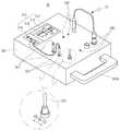 탐촉자(340)는 일단이 컨트롤 패널부(310)의 단자(318)에 연결되고, 타단이 본체(300)에 구비된 탐촉자 커넥터(350)에 결합된다. 탐촉자(340)는 가늘고 뾰족한 탐침(probe) 형태이므로 시험 대상 케이블(10)의 커넥터 핀에 정확하게 접촉시키기가 어려운 문제가 있다.One end of the
