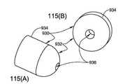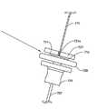 도 114 내지 도 120은 드라이브 멤버(710)와 드라이브 멤버(150/551) 사이의 연결을 추가로 예시한다. 도 114에 예시된 것처럼, 중간부(500)에서 중간 케이블 섹션(551)에 부착된 상기 기재된 리본 부재(150)를 포함할 수 있는 근위 드라이브 멤버는 말단부(930)가 부착된 후 제자리에 고정된 페룰(910)에 수용되고, 케이블/봉(551)이 커플링(920)에서 슬롯(924)을 통과함으로써 커플링에서 동공(922)으로 위치한다. 말단부의 둥근 부분(932)이 원위로 마주보아, 멤버(551)와 커플링(920) 사이의 이동을 허용한다. 도 115 내지 도 117에 예시된 것처럼, 말단부(930)는 케이블(551)을 수용하기 위한 통로(936)를 획정하고, 대체로 원통형 근위 섹션(934)을 획정한다. 페룰(910)은 케이블(551)을 수용하기 위한 통로(912), 및 케이블(551)에서 제자리에서 페룰을 보유하기 위한 예컨대 브레이징 또는 납땜 물질 또는 다른 물질을 수용하기 위한 횡단 개구(914)를 획정한다. 커플링(920)은 근위 면(922a), 원위 면(928) 및 시굴공(922)을 포함한다. 도 118 내지 도 120과 함께 도 114에 예시된 것처럼, 나사산형성된 수핏팅(threaded male fitting)(940)은 커플링의 나사산형성된 개구(922) 내에 수용되고, 위의 보유 육각 너트(950)를 수용한다. 핏팅(940)의 근위 말단(943)은 근위로 마주보고, 드라이브 리본/케이블(710)의 원위 팁(717)을 수용하기 위한 내부의 동공(946)을 획정한다. 중지(719)가 근위 면(943)과 접촉할 때까지 팁(717)은 동공(946)으로 삽입된다. 나사산(942, 952)은 핏팅(940) 및 너트(950) 상에 획정된다. 구성성분(940, 710)은 간섭 피트 및/또는 용접, 땜납, 브레이징, 접착제 등(이들로 제한되지는 않음)을 포함하는 임의의 적합한 수단에 의해 커플링될 수 있다. 도 121 내지 도 122는 토션 스프링(960) 및 가이드 스프링(970), 및 핸들(600) 내의 다른 구성성분과 관련한 이의 위치를 예시한다. 스프링(960, 970)은 가이드(120, 130)를 전개하고 견인하기 위한 제어 메커니즘의 부품이다. 리턴 스프링(895, 897)은 도 121(C)에 예시되어 있다.Figures 114-120 further illustrate the connection between the